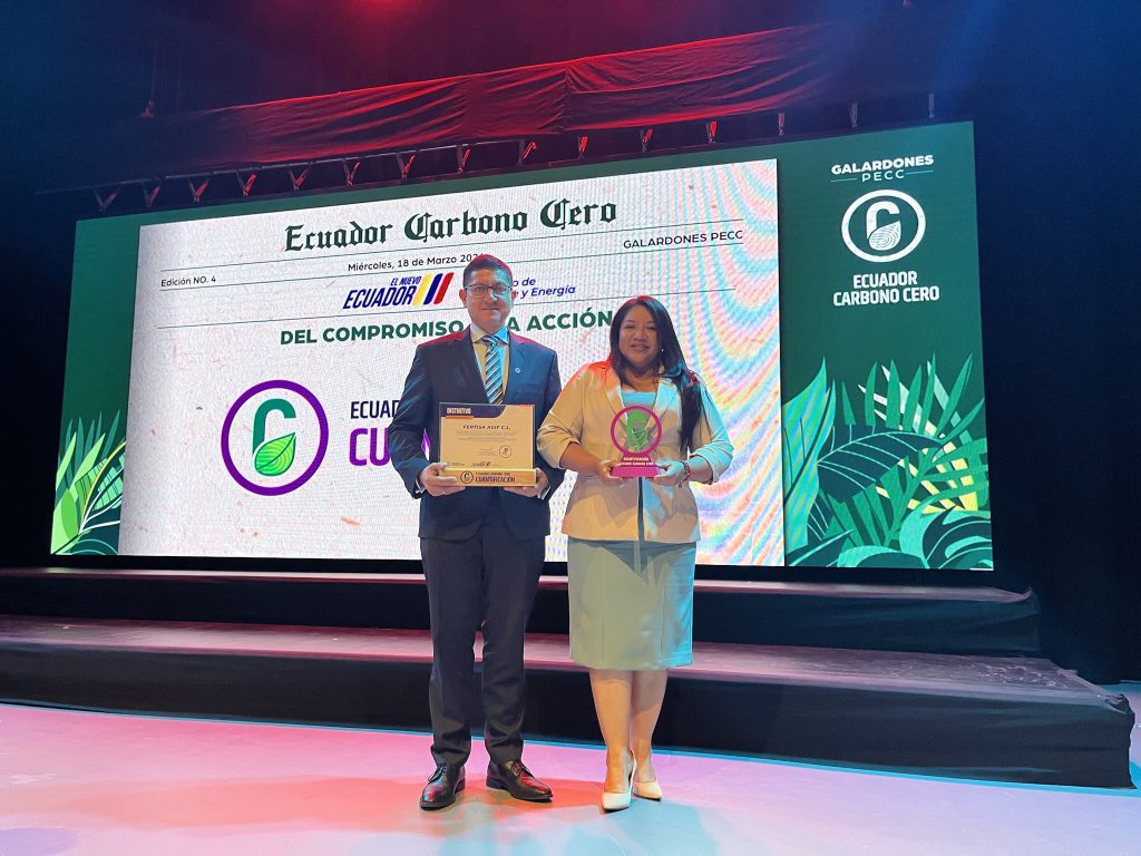 El pasado 18 de marzo, en el marco de la 4.ª entrega de galardones del Programa Ecuador Carbono Cero (PECC) “Del compromiso a la acción”, organizada por el Ministerio de Ambiente y Energía, Fertisa AGIF fue reconocida por la implementación de procesos verificables para la cuantificación de su huella de carbono.